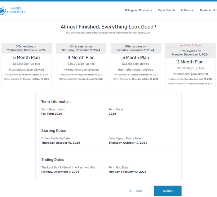 This page only displays if you had term specific payment plan details configured for the corresponding term in the prior year.