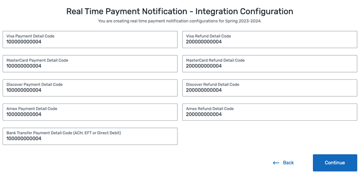 On the Real Time Payment Notification - Integration Configuration page, review the payment notification codes.