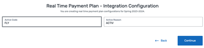 On the Real Time Payment Plan - Integration Configuration page, review the payment plan activation codes for real time integration.