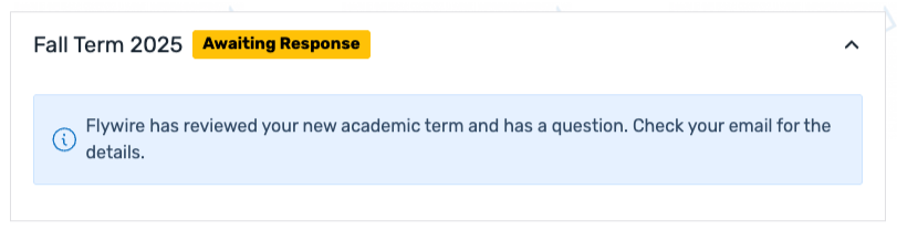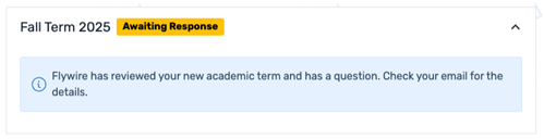 If Flywire Support has questions for you, they will update the term status to Awaiting Response and reach out via email for clarification. If you have follow-up questions or concerns you can send them to Flywire Support during this conversation.