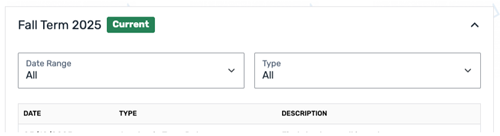 The Current status indicates that the SFS considers this term to be the primary active term. You will see the Current status indicator on the Billing and Payments Dashboard page.