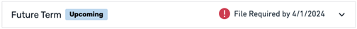 An upcoming term becomes the current term the day after the end date of the prior current term. If Flywire needs a file from you, you will see a file warning on an Upcoming term.