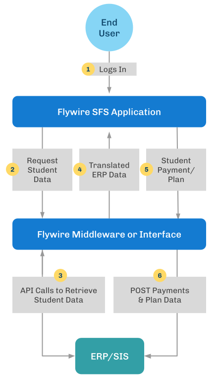 Flywire sends various real-time API calls to your SIS/ERP in order to power the functionality in SFS. This process utilizes the following Flywire developed APIs: