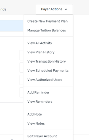 Select the Payer Actions menu list and click Edit Payer Account.