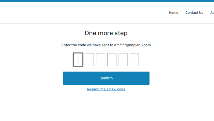 The SFS sends you an email with your 6-digit code and the One more step page appears.