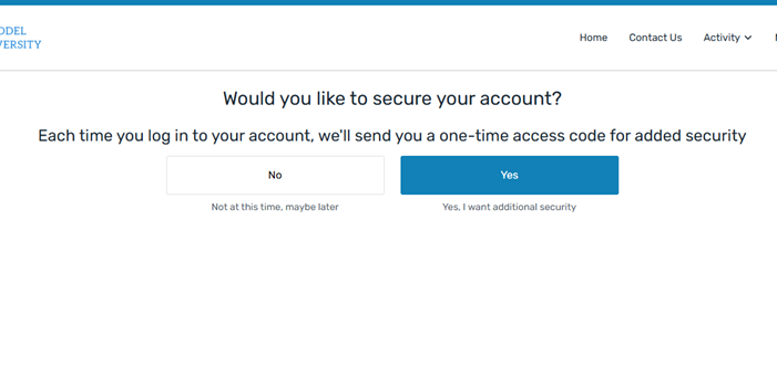 On the Would you like to secure your account? page , click Yes to enable multi-factor authentication.