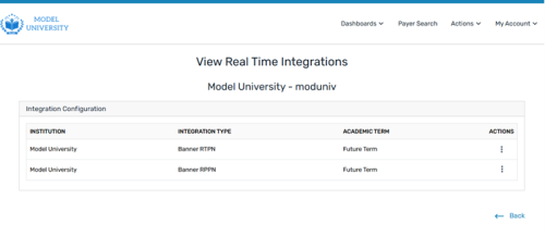 You can use the View Real Time Integrations page to view the real-time integrations for your institution and sub-institutions.