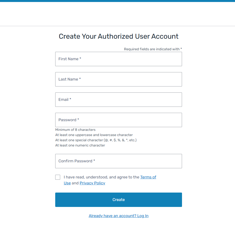 Create Your Authorized User Account page