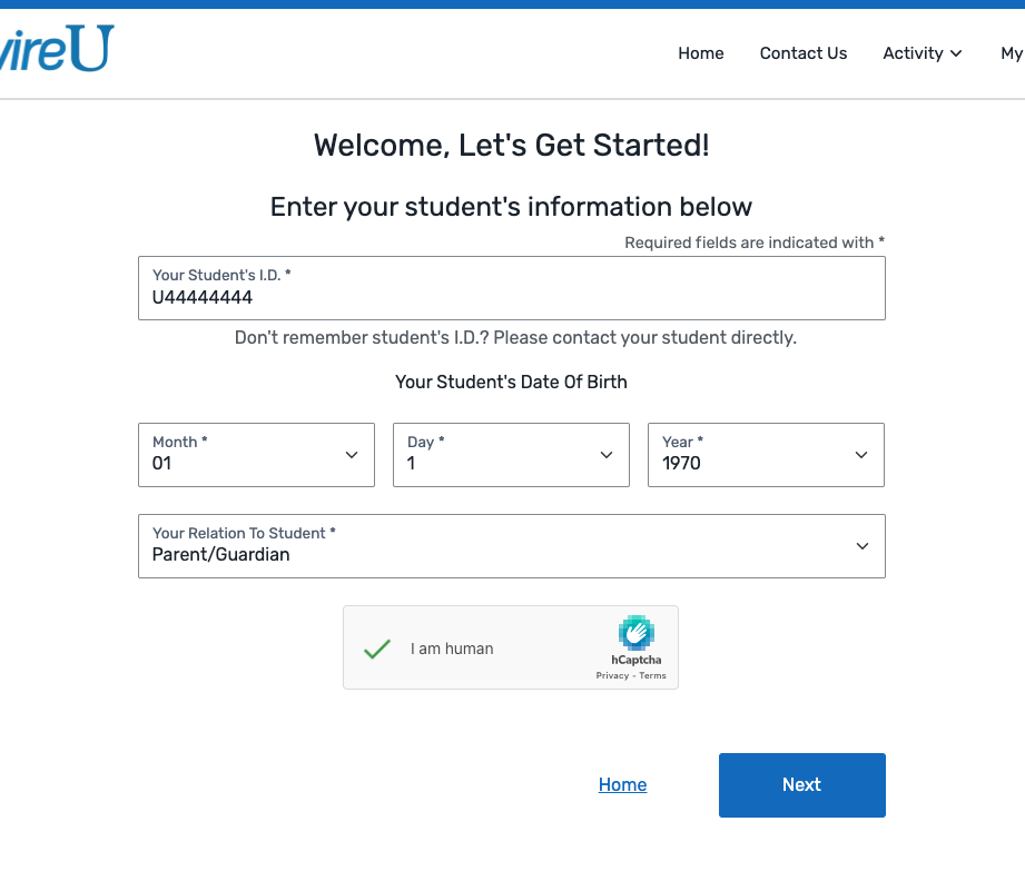 Enter the student's information.