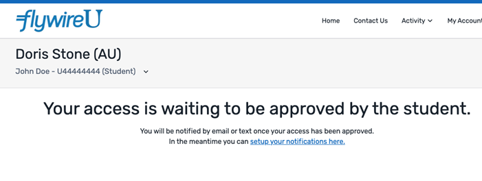 Flywire sends a notification to the student. The student must approve your access to their account.